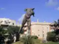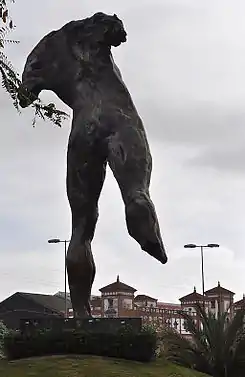 ![]() Estatua del Minotauro con la estación de ferrocarriles al fondo | ||