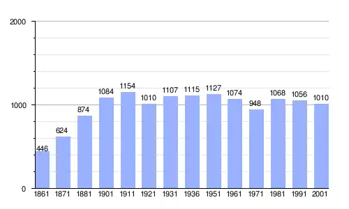 Gráfica de evolución demográfica de Rovasenda entre 1861 y 2001 |