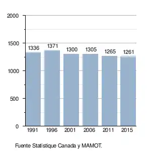b. Statistique Canada, Profils des communautés de 2001 : Roxton Falls, Ottawa. 01/02/07. Consultado el 16 de noviembre de 2015. (en francés)