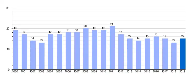 Gráfica de evolución demográfica de Rozas entre 2000 y 2019 |