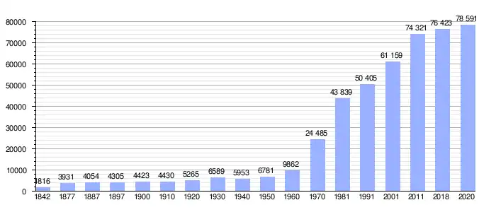 Gráfica de evolución demográfica de Rubí (Barcelona) entre 1842 y 2020 |