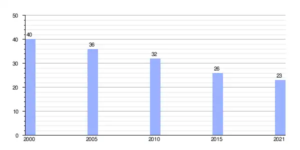 Gráfica de evolución demográfica de Rubín entre 2000 y 2021 |