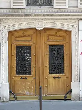 ![]() Puerta doble esculpida en madera (3 bis rue d’Athènes) | ||