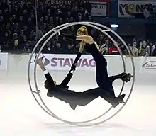 La rueda consta de dos elementos básicos: Dos aros paralelos y seis radios, dos de ellos son tubos simbles circulares, dos incluyen una asa en cada uno y dos tienen un apoya pies. El diámetro de cada rueda depende de la estatura del gimnasta, debe ser lo suficientemente cómoda para que el deportista pueda desplazarse de manera cómoda completamente estirado. El tamaño puede variar en un promedio 130 a 240 centímetros de diámetro, con un peso entre los 40 y 60 kg.