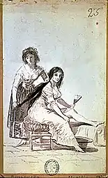 Existen varios manuscritos contemporáneos que explican las láminas de los Caprichos. El que se encuentra en el Museo del Prado se tiene como autógrafo de Goya, pero parece más bien despistar y buscar un significado moralizante que encubra significados más arriesgados para el autor. Otros dos, el que perteneció a Ayala y el que se encuentra en la Biblioteca Nacional, realzan la parte más escabrosa de las láminas.[1]