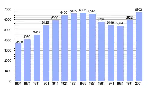 Gráfica de evolución demográfica de Rufina entre 1861 y 2001 |