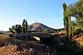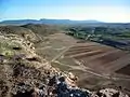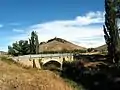 - Vista general (meridional) del cerro de Moya (Cuenca), desde el puente del río Ojos.
