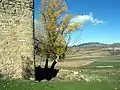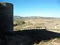 - Panorama de la vega desde la Puerta de los Ojos en Moya (Cuenca), con detalle del muro.
