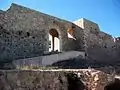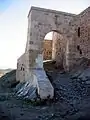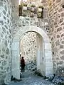 - Vista lateral de la Puerta de San Juan en Moya (Cuenca), con detalle de la rampa, tras su restauración. Siglo XIII.