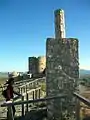 - Detalle del punto geodésico en el cerro de Moya (Cuenca), con el castillo al fondo.