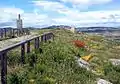 - Detalle del punto geodésico en el cerro de Moya (Cuenca), con la villa al fondo.