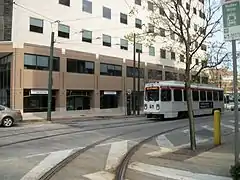 Los trolebuses usados por esta línea son similares a los del Canadian Light Rail Vehicle usados por la Comisión de Tránsito de Toronto; ambos de unidades de un solo vagón y similares en proporción a los operados a nivel de calle. Ambos son ejemplos de los PCC streetcar.