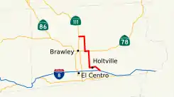 SR 111 en Calipatria. La carretera tiene una longitud de 56,7 km (35.24 mi).[1]