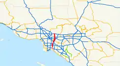 ![]() Lakewood Boulevard pasando bajo la I-405 y el Aeropuerto de Long Beach | |||||||||