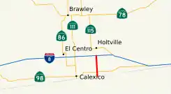 La Ruta Estatal de California es atravesada principalmente por la SR 98 cerca de Calexico.