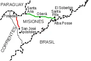 - Departamento Apóstoles (km 32-35): Pindapoy (km 34) y San José (km 35).