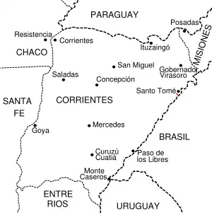 • noroeste | 4 km al oeste de Santo Tomé (28°33′57.8″S 56°4′44.2″O) | ||||||||