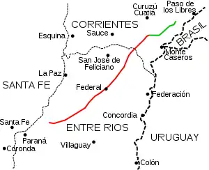 • noreste Paraje Cuatro Bocas (30°4′39.4″S 58°0′12.2″O)