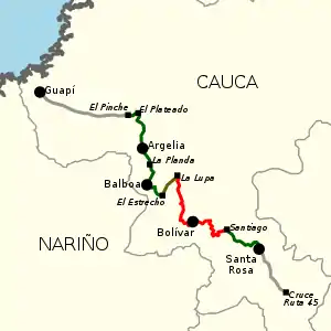 1203 | Patía | La Lupa (Cruce 2503 ); Río San Pedro; Guachicono; Lerma (Acceso 12CC01 ). | ![]() |