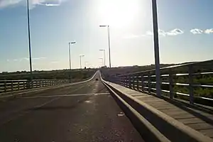 En el km 7,8 se encuentra el acceso a la ciudad de Colón. Más adelante, en el km 11,6 se encuentra el puesto aduanero y finalmente en el km 12,9 comienza el viaducto que conduce al puente.