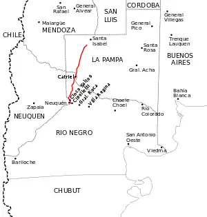 - Departamento Puelén: Veinticinco de Mayo (km 150) y Puelén (km 195).