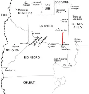 • sur | La Adela (38°58′11.8″S 64°4′32.4″O) | ||||||||