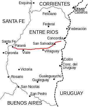 • Este | RN 14 cerca de Concordia (31°30′44.9″S 58°11′9.1″O) | ||||||||