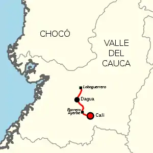 Dagua | Cruce 3201 (Acceso 3201 a Borrero Ayerbe y Buenaventura); Cruce Ramal (Acceso 19VL02 a Bitarco); Pueblo Nuevo; El Palmar (Acceso 32VL03 a Borrero Ayerbe); Cruce 19VL02-2 (Acceso 19VL02-2 a Pavas); Cruce 32VL01 (Acceso 32VL01 a Borrero Ayerbe); Dagua (Ramal 19VL01 ); Río Bitaco; Loboguerrero (Cruce 4001 ). |