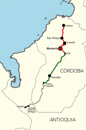 2102 | Tierralta | Central Hidroeléctrica Urrá; Puerto Frasquillo; Frasquillo Nuevo; Campo Bello; Tierralta; Nueva Esperanza (Acceso 21CR01 a Valencia). | ![]() |