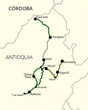 Gómez Plata | La Estrella; Gómez Plata; El Guayabo (Acceso 62AN21-1 a Carolina del Príncipe); El Salto (Acceso 62AN21-1 a Guadalupe). | ||
