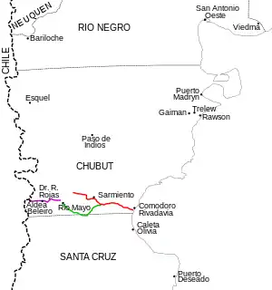 Fue inaugurada en abril de 1955 originalmente recorría el sur de la provincia del Chubut y el norte de la provincia de Santa Cruz en un recorrido de 259 km entre Comodoro Rivadavia y Río Mayo.