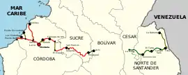 Transversal Puerto Rey - Tibú: (Puerto Rey - Montería); (Cereté - La Ye); (El Viajano - Achí) Transversal de las Américas: (Puerto Rey - Montería) (Santa Lucía - Cocarito) IP Córboda - Sucre: (Cereté - La Ye). | |
