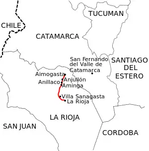 - Departamento Castro Barros: Aminga (km 93), Anillaco (km 98) y acceso a Anjullón (km 107).