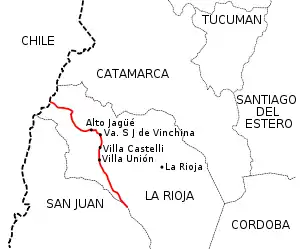 - Departamento Vinchina: Villa San José de Vinchina (km 185) y Jagüé (km 219).