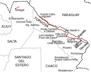 - Departamento Pilagás: El Espinillo (km 1382) y Misión Tacaaglé (km 1410).