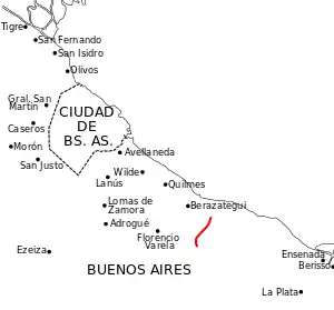 • sudoeste | Juan María Gutiérrez (34°50′30.2″S 58°11′20″O) | ||||||||