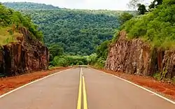 ![]() La RP 27 atravesando la Reserva de Biosfera Yabotí. | ||