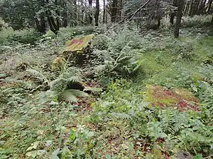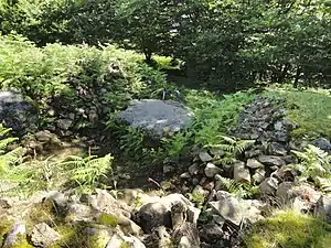 - En 1921: "Losa g" de 0,85 x 0,65 x 0,05 metros de naturaleza pizarreña, ubicada al oeste del centro del túmulo.