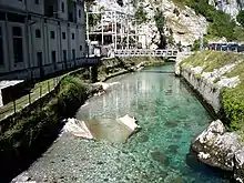 En el punto medio, se puede observar en el fondo del valle el surgimiento de un río subterráneo con un caudal muy sostenido.