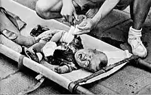 Sábado Sangriento es el nombre de una fotografía en blanco y negro que fue ampliamente publicada entre septiembre y octubre de 1937, y en menos de un mes fue vista por más de 136 millones de personas.[1] La fotografía, que muestra a un bebé chino llorando dentro de las ruinas bombardeadas de la Estación de Tren Sur de Shanghái, se convirtió en un ícono cultural que demostraba las atrocidades de guerra japonesas en China. Tomada minutos después de un ataque aéreo sobre civiles durante la Batalla de Shanghái, el fotógrafo H.S. Wong de Hearst Corporation, también conocido como Wong Hai-Sheng o Wang Xiaoting, no descubrió la identidad o siquiera el sexo del bebé lastimado, cuya madre yacía muerta a unos metros. Una de las fotografías de guerra más memorables jamás publicadas, y tal vez la escena noticiosa más famosa de los años 1930,[2] la imagen estimuló una explosión de indignación en occidente en contra de la violencia japonesa en China.[3] El periodista Harold Isaacs llamó a la icónica imagen "uno de los ejemplos de 'propaganda' más exitosos de todos los tiempos".[4]