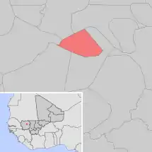 Se encuentra ubicada al oeste del país y al sureste de la región de Kayes, cerca de la frontera con República de Guinea y la región de Kulikoró.