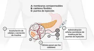 Se trata de un dispositivo médico que encapsula células secretoras de insulina para el tratamiento de la diabetes tipo 1.