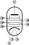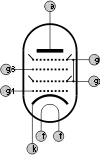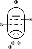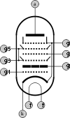 , ánodo , rejilla de pantalla , rejilla de control , rejilla de pantalla , rejilla de control , cátodo , filamento |