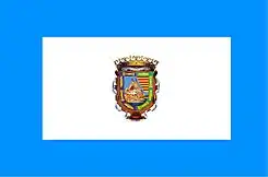 - En campo de gules (rojo), unas peñas cimadas de una villa acompañada de un puerto en lo bajo, al natural, todo sobre ondas de mar de plata y azur; en cantón diestro de jefe, los patronos afrontados, al natural, con resplandores de oro, con manto de azur y túnica de oro, así como el sobrecuello de Santa Paula. Bordura partida de sínople (verde) y púrpura, cargada con cuatro haces de cinco flechas empuñadas por un yugo todo ello de plata y un ramo del mismo metal (color), alternandos.