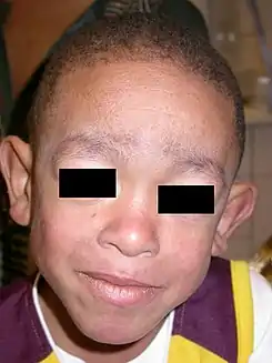 ![]() Rasgos faciales toscos en un niño con síndrome de Blau | ||