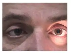 ![]() Paciente con síndrome de Miller Fisher, donde es posible observar la oftalmoplejia y arreflexia pupilar que son características del síndrome. | ||