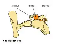 ![]() Osiculos auditorios, cuya fusión es un síntoma de esta condición. | ||