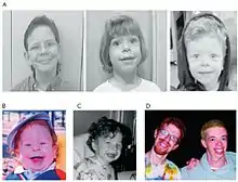 Síntomas | Cambios faciales que incluyen estructura de mentón subdesarrollada, discapacidad intelectual, baja estatura | |
