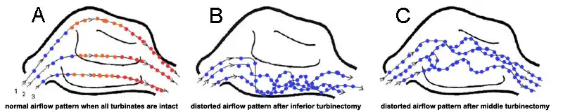El fenómeno de la “obstrucción paradójica” ha sido repetidamente demostrado en estudios que simulan el flujo aéreo nasal, usando para ello modelos anatómicos con medios mecánicos de observación y modelos informáticos. Los resultados evidencian el impacto adverso de las turbinectomías en los patrones del flujo aéreo nasal.[4][5]