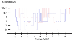 ![]() Patrón del sueño de un paciente con Síndrome de Piernas Inquietas (rojo) frente a un patrón de sueño saludable (azul). | ||